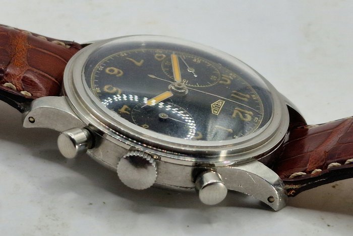 Zeldzaam verzamelhorloge van staal van Heuer. Origineel uurwerk Valjoux 22. Oversized - Militair horloge.