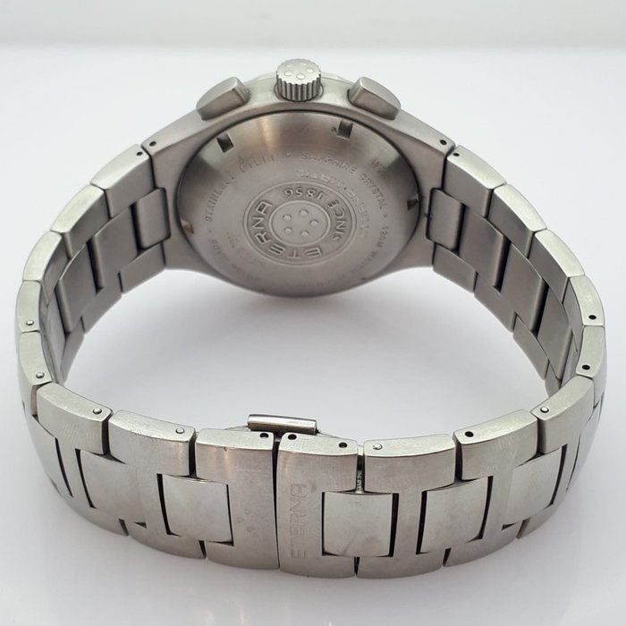 Kenmerken: saffierkristalglas, roestvrij staal, chronograaf, automatisch ETA 7750-uurwerk, draaibare duikring, fosforzuur, tachymeter, 120 m waterbestendig
