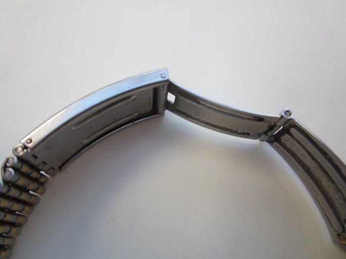 Zwitsers horloge "FAVRE LEUBA" (Genève) geheel van staal, in zeer goede staat, quartz uurwerk (nieuwe batterij), datumaanduiding op 3 uur met snelle vooruitloop, glas intact, vergrendelbare kroon, WAT. RESIST., geschroefde bodem, originele stalen band met vouwsluiting en "veer", DIAM. kroon hots:: 4cm, totale LENGTE (gesloten): circa 21cm