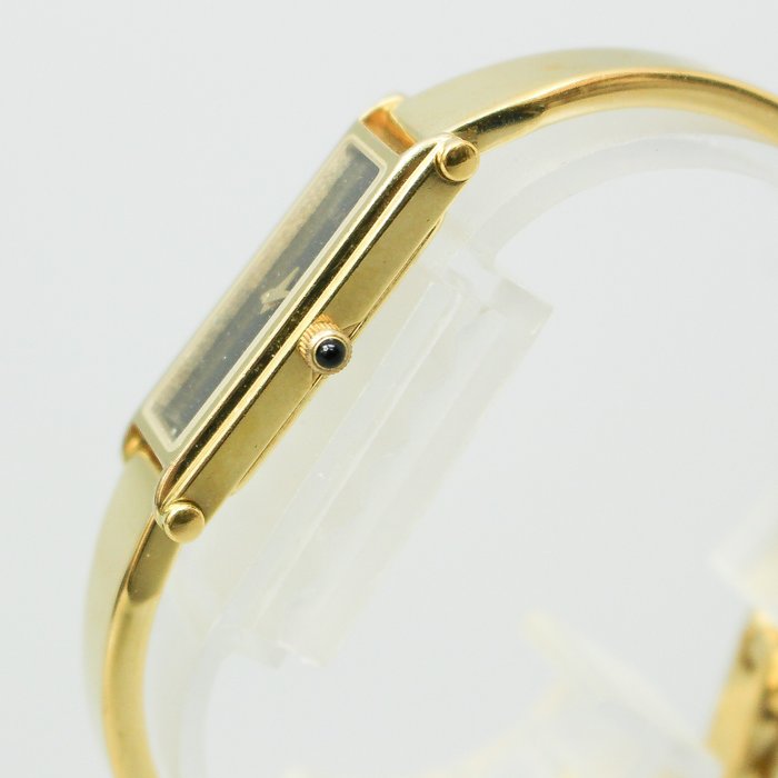 GUCCI 1500 quartz dameshorloge vintage rechthoek zwarte wijzerplaat verguld