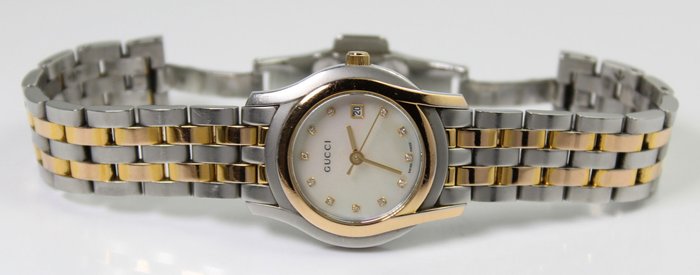 Dit prachtige Gucci horloge is in zeer goede staat. Het heeft een Zwitsers uurwerk en een Gucci roestvrijstalen armbandband. Klassiek Gucci horloge met een prachtige parelmoeren wijzerplaat en diamanten markeringen