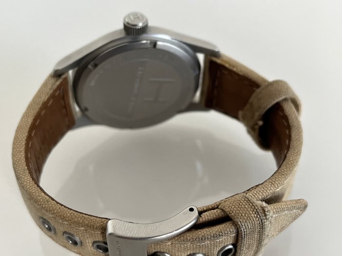 Hamilton Khaki Field Mechanic 38mm. Een iconisch horloge welke in elke collectie hoort. Het horloge verkeert in zeer goede staat. Nauwelijks gebruikssporen zichtbaar. Het betreft het 38mm model met mechanisch (handopwind) uurwerk. Het glas en de kast zijn in zeer goede staat. De band (canvas met leder) is gedragen maar past in deze staat zeer goed bij het horloge, zie ook de foto's.