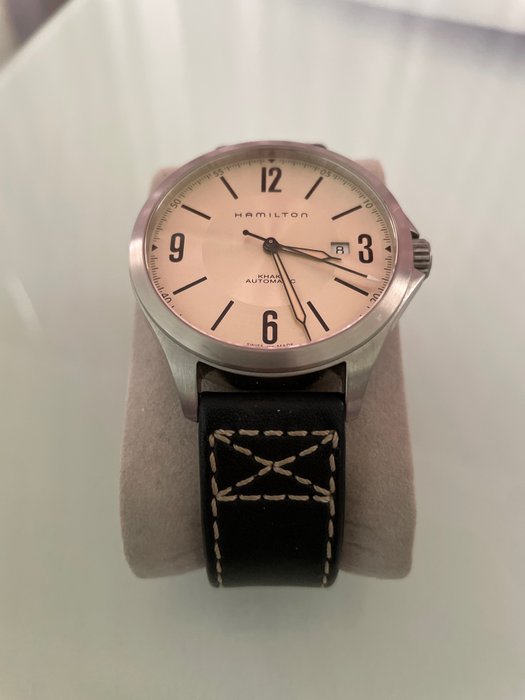 De band is Hamilton origineel en de diameter van het horloge is 42 mm.