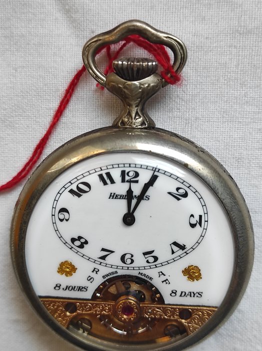 Hebdomas, Longchamps, Swiss made 8 daags zakhorloge, in perfect werkende staat en zonder gebruikssporen. Handmatig opwindbaar uurwerk 8 dagen opladen. Stalen kast afmeting 50 mm met kroon 70 mm Witte wijzerplaat met Romeinse cijfers en subdial met zichtbaar uurwerk zwarte wijzers zwarte cijfers