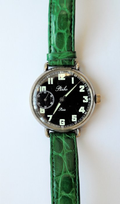 Onverkrijgbaar Hebdomas horloge, Pinko X40FW model, mechanisch met handmatige opwinding, volledig geskeletteerd aan de achterkant. Kast 40 mm exclusief kroon. Compleet met groen lederen band. Conditie volgens foto.