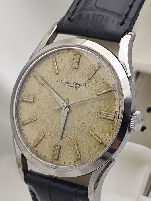 Wijzerplaat met perfecte patina is in uitstekende staat, gesigneerd 'International Watch Co. Schaffhausen originele zilveren wijzers in uitstekende staat, helder kristal, kroon in zeer goede staat.
