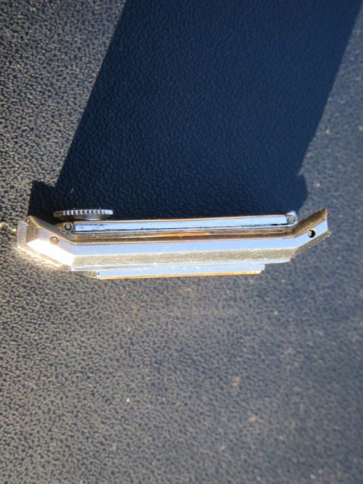 - Horloge met chocoladekleurige band. Hij is 3 cm lang, 1,2 cm breed en 5 mm dik.
