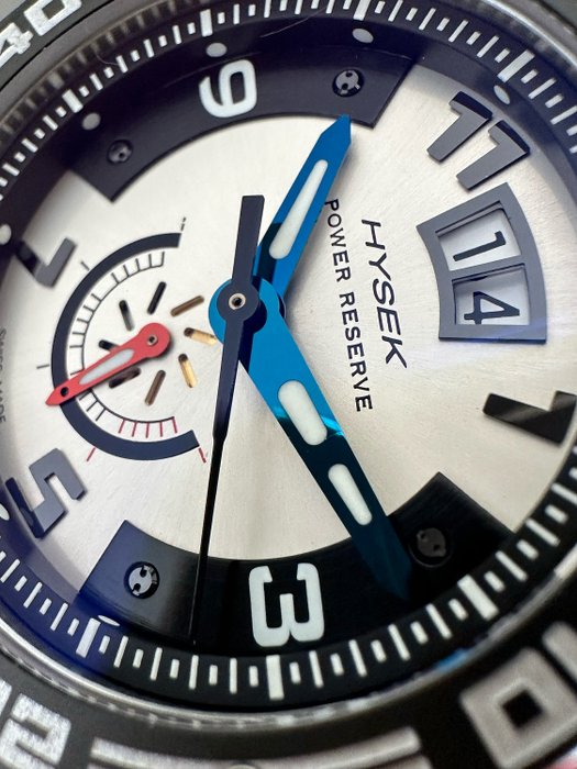 Wijzerplaat: zilver, zwart, gesigneerd met Hysek Power Reserve
