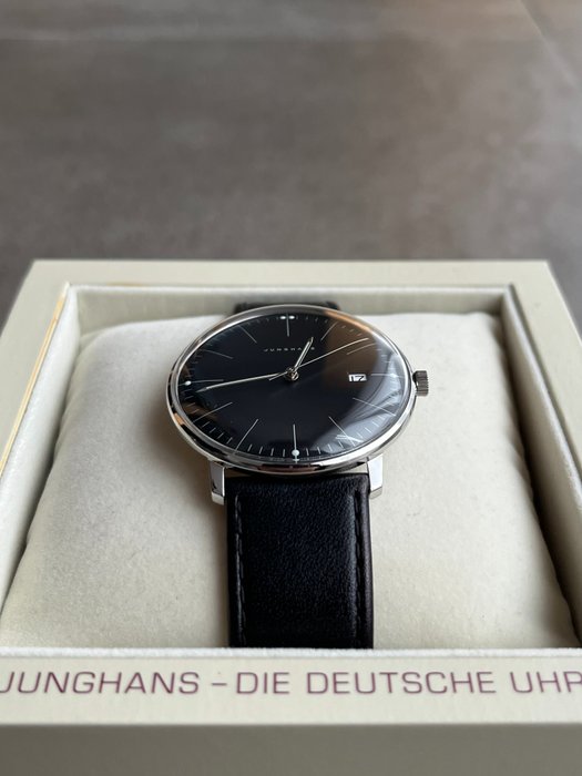 Zo goed als nieuw origineel Junghans Max Bill quartz horloge in de kleur zwart: