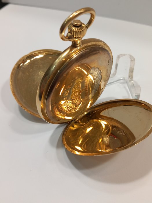 18k gouden kast, in perfect werkende staat, nooit gerepareerd (hij heeft 30 jaar op de bank gelegen) Gewicht: 76,40 g met uurwerk Kastmaat: 5x5 cm exclusief kroon en haak Verzonden via koerier met tracking.