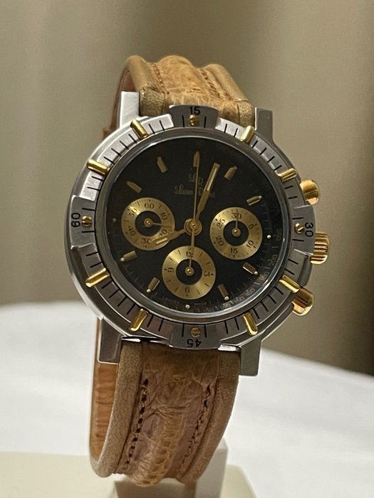 Te koop, uit mijn privécollectie, een prachtig exemplaar van Lucien Rochat met een kast van 40 mm inclusief kroon waarop het prestigieuze mechanische uurwerk LEMANIA 1873 met handmatige opwinding is gemonteerd.Het horloge heeft een totaal gewicht van 72,12 g en een totale lengte van 23 cm. De wijzerplaat is zwart en de wijzers zijn goudkleurig. De bezel is gemengd staal/goud en mono directioneel. Het uurwerk is in werkende staat, nooit onderhouden, nooit getest op waterdichtheid. Het wordt verkocht zonder doos en zonder enige garantie. LET OP: de band is van origineel jaren 80 beige leer, hierdoor is er geen garantie dat het leer een lange levensduur heeft. Originele stalen gesp met LR initialen. Bekijk de afbeeldingen goed alvorens te bieden, deze maken integraal deel uit van de omschrijving. U ontvangt niets anders. Het artikel wordt verzonden door een DHL Express-koerier in een goed verpakt/beschermd pakket met tracking, indien nodig met een generieke doos. Eventuele extra kosten voor aankopen buiten de EU, zoals douane, belastingen, diverse kosten, etc. zijn volledig voor rekening van de koper aangezien deze niet van mij afhankelijk zijn.