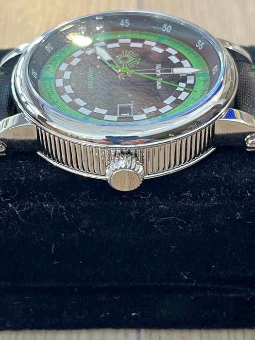 Beautiful Martin Braun Grand Prix watch. This is a 2006 NOS (new old stock) watch with glass (top and bottom) still in foil. This is numbered 006.