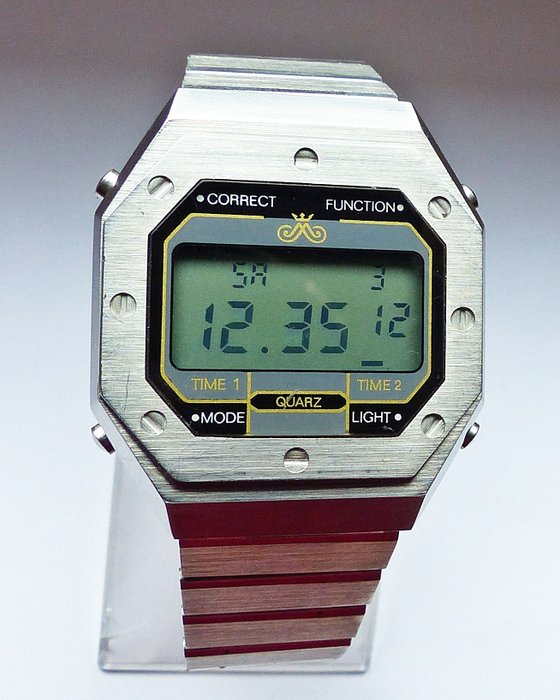 Mooie en zeer zeldzame Meister Anker LCD alarm chronograaf met LCD wijzerplaat, chronograaf functie, nachtverlichting, alarmfunctie, geschroefde edelstalen bezel, nieuwe service etc. Het horloge is volledig functioneel en in top verzorgde staat, zie foto's