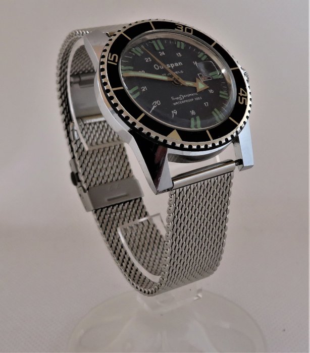 Vintage Frans duikershorloge, handopwinder, Mortima Superdatomatic Outspan Diver Date.