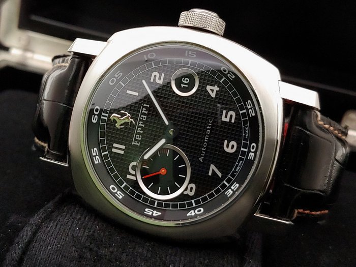 Panerai horloge, model: Ferrari Gran Turismo, referentie: F6654, gemaakt in een beperkte oplage, in goede staat zoals te zien op de foto's, compleet met originele doos en certificaat van de Zwitserse officiële chronometercontrole, geen garantiedocumenten.