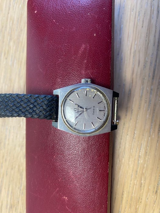Originele Omega wijzerplaat, kroon en bandgesp.