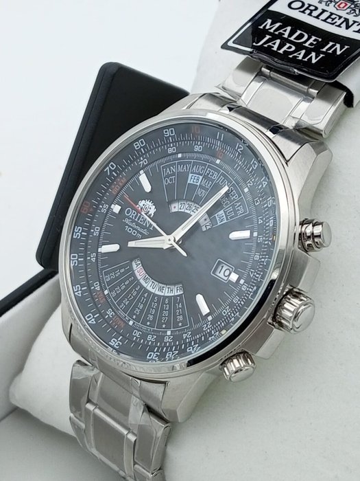 Dit horloge is op de achterkant en bandbeschermers die nooit om de pols zijn gedragen. U zult de eerste zijn die de roterende binnenring van de Orient Multi Year Calendar gebruikt. De vergrendelde top 100 meter waterdicht werkt perfect. Controleer de foto's. Houd er rekening mee dat de douane van het land de verantwoordelijkheid van de koper is.