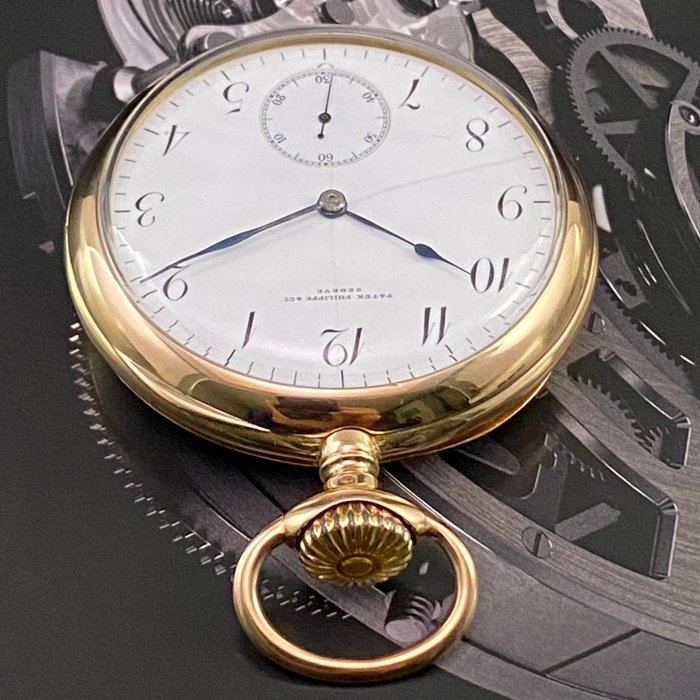 Patek Philippe & Cª, Geneve. Zakhorloge van het prestigieuze Zwitserse merk uit het begin van de 20e eeuw. Patek Phillippe handopwindbaar uurwerk. Het heeft een diameter van 50 mm en 62 mm met de kroon. Weegt in totaal 86,5 gram, gemaakt van 18K roségoud Mineraalheldere lens. Klok onlangs herzien om de juiste tijd bij te houden. Deze Patek Philippe heeft een dikte van 15 mm. Alle onderdelen zijn van 18k goud, inclusief de boog die de kroon beschermt. Het horloge wordt aangetekend, zeer goed verpakt en verzekerd verzonden door Fedex