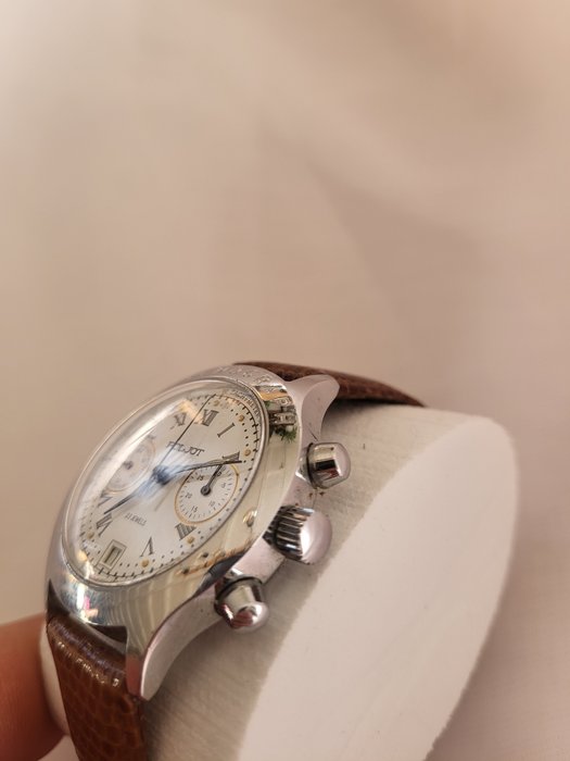 De volledig stalen kast heeft een diameter van 39 mm en is ongeveer 12 mm dik. Op de achterkant van de kast is het nummer 162702 gegraveerd. De wijzerplaat is wit met gouden Romeinse cijfers en zwarte wijzers. Het heeft twee subdials (kleine seconde en 30 minuten) en een datumaanduiding op de 6 uur positie. Het horloge ziet er zeer goed uit.De band is 18mm breed en past om een pols met een omtrek van 21cm. Het horloge loopt goed en de chronograaf reset correct op "0".