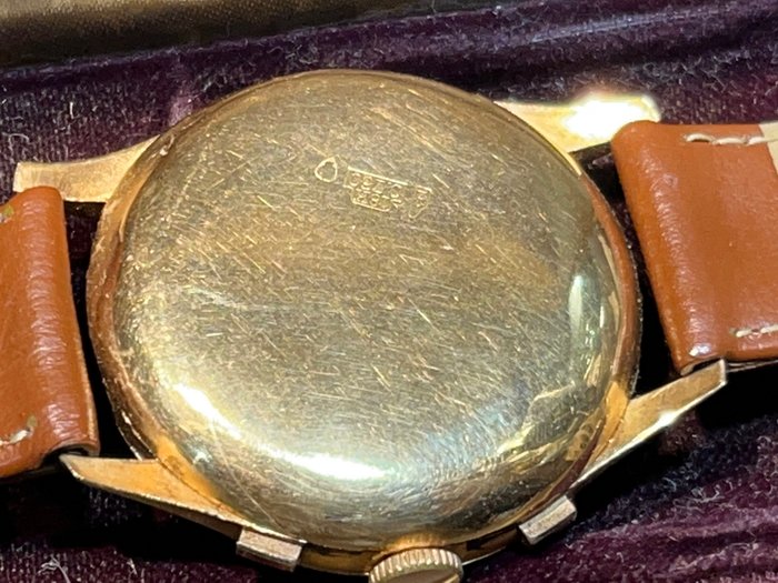 Schitterende chronograaf in 18-karaats goud, solide, tekenen van eerdere reparaties (jaren geleden gedaan, zichtbaar op de foto's) maar in perfect werkende staat, met absoluut originele vintage kast.