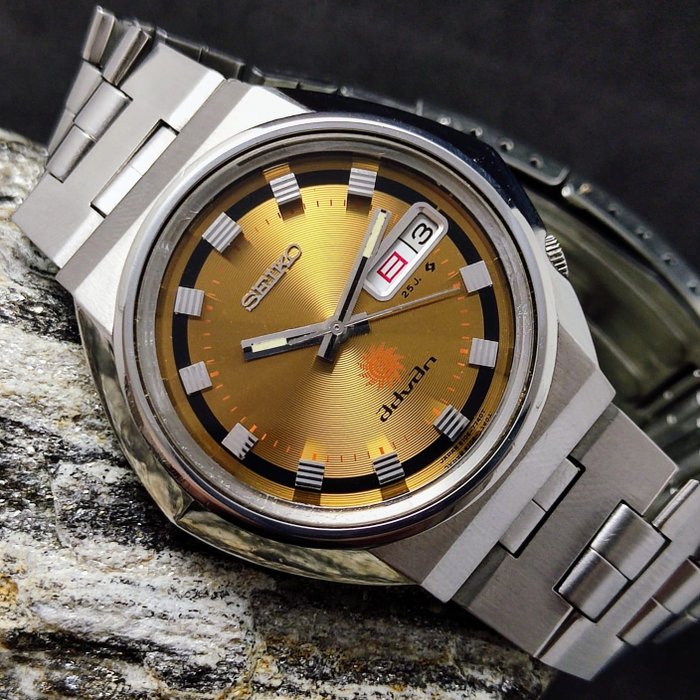 → Jaren 70 Zeldzaam Seiko Advan "Sun" Wijzerplaat Automatisch vintage model volledig origineel herenpolshorloge. In perfecte staat.