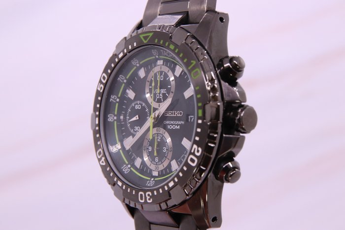 Model: Seiko 7T92-0LG0 Zwarte wijzerplaat chronograaf 100m quartz sporthorloge