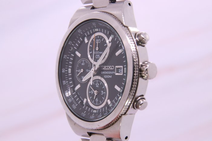 Model: Seiko SND430 zwarte wijzerplaat heren chronograaf 100M quartz horloge
