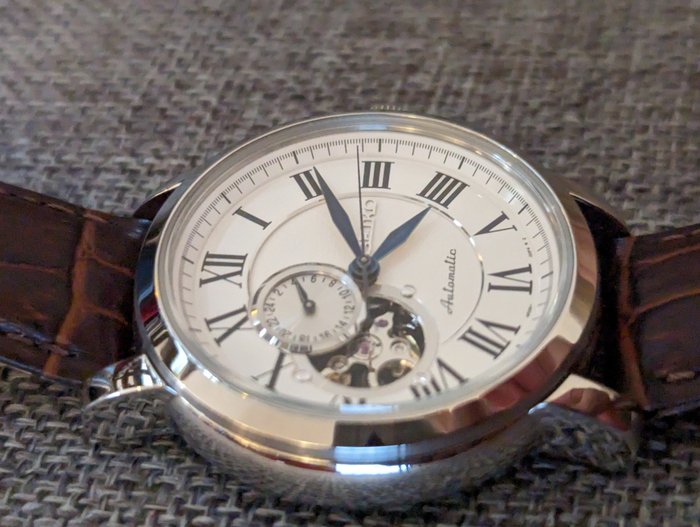 Dit Seiko Premier Open Heart-jurkhorloge is een van de weinige die het "Premier"-logo niet op de wijzerplaat draagt en is daarom erg gewild bij sommige horlogeverzamelaars. De kast en wijzerplaat van 41 mm zijn in bijna NOS-staat en worden geleverd met de originele Seiko kalfsleren band, Seiko stalen gesp, originele doos en handleiding. Houd er rekening mee dat er geen garantiekaart is, hoewel er wel een garantieboekje wordt meegeleverd.