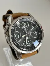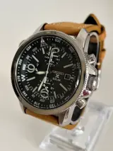Het horloge is voorzien van nieuwe aftermarket echt lederen band. Het glas heeft de nodoge krasjes, niet storend, mede door de zwarte plaat.