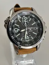 Seiko Prospex SSC081P1 Chronograaf met hardlex mineraalglas, alarm en datumaanduiding. Stalen kast in combinatie met zwarte wijzerplaat.