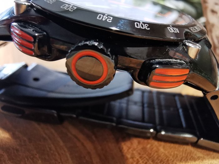 Wijzerplaat Zwarte wijzerplaat met lumbrite markers en rode secondewijzer
