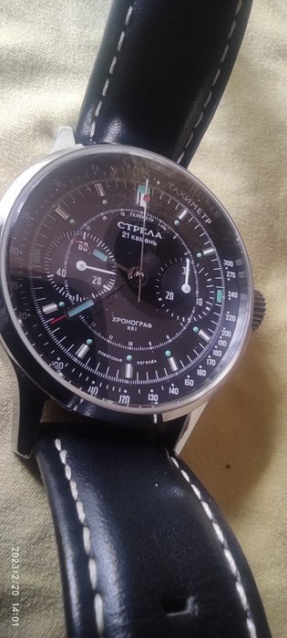 De zwarte wijzerplaat van het Cosmos CO40CYB-model lijkt op de look & feel van vintage Strela-modellen. Toegepaste zilveren en groene lichtgevende staafindexen. Lichtgevende peddelhanden (Superluminova). Een tachymeterschaal en een telemeterschaal. Een retro Strela-ontwerp dat decennialang zorgvuldig is gecultiveerd.