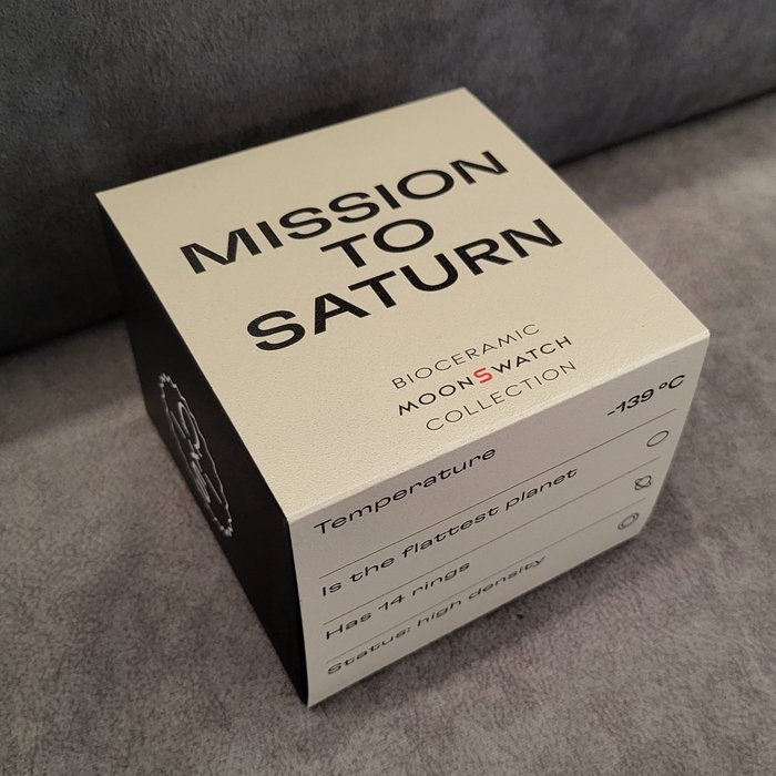 On this model, sandy, cool beige tones contrast nicely with a brown dial and VELCRO© strap. The chronograph seconds hand, subdial hands and tachymeter scale background are also in brown. The seconds subdial depicts Saturn's rings. All dials carry the OMEGA X SWATCH branding, as well as the iconic Speedmaster logo and the new MoonSwatch logo. The glass construction, the “hidden” S integrated in the center of the crystal, the fine and sophisticated circular pattern on the dial outer ring and the subdials, the sharp and smooth lugs construction, the iconic “dot over 90” detail on the tachymeter scaled bezel, and of course the unique Bioceramic touch are common to all models and stand for passionate love for details. All hours, minutes, chronograph seconds hands and hour markers sport superluminova for a perfect glow in the dark. SO33T100