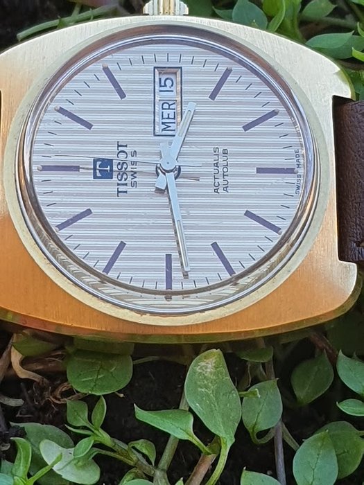 Tissot, Fab. Suisse, Zwitserse makelij, Chs. Tissot & Fils, Fond Acier Inoxydable - verchroomde, vergulde kast van 36 mm exclusief kroon, plastic glas, gesigneerde kroon, stalen container aan de bovenkant vastgehouden door tongen en groeven, originele lichtgevende wijzerplaat, gebruikte band met gesp met Tissot-logo, horloge in goede staat algemene staat, zeldzaam om te vinden.