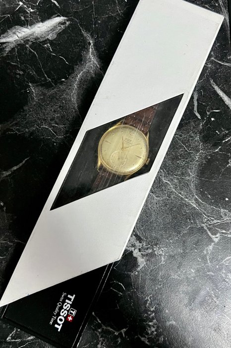 Tissot heren oud polshorloge - jaren 50 ref. nummer: 6719-3 groot formaat Tissot 15 steens handopwind uurwerk, cal. 27-T kleine seconde in goed werkende staat rosévergulde kast diameter: 39 mm zonder kroon, 8,7 mm dik inc. kristallen band/armband: goede staat echt lederen band en geschikt voor polsomtrek tot 23 cm conditie: goede staat, vertoont over het algemeen gebruikssporen, in goede staat (houd er rekening mee dat alle foto's een hoge resolutie hebben en imperfecties op foto's groter lijken dan ze zijn eigenlijk) doos beschikbaar. Het wordt verzonden in een vintage doos. Verzending zal op de snelste manier naar de hele wereld worden verzorgd met UPS-vracht.