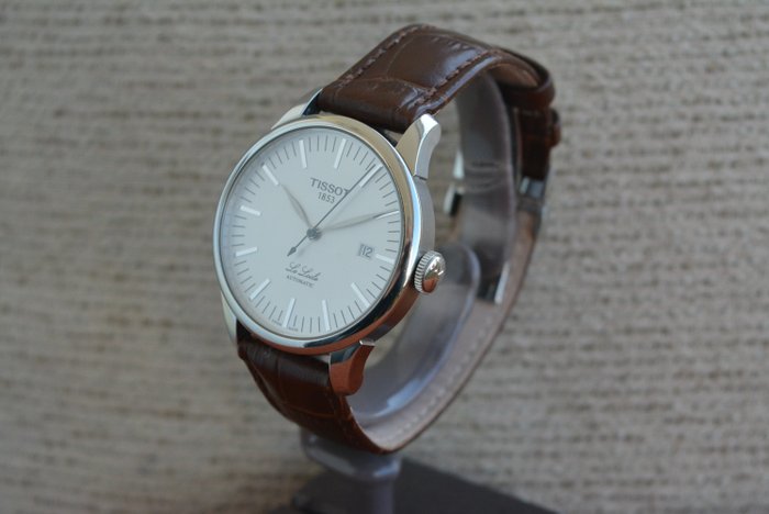 Te koop Tissot Le Locle horloge, automaat, stalen kast, diameter 39 mm exclusief kroon, mineraal glas, witte wijzerplaat met datumaanduiding op 3 uur met snap-on datum, stalen kastbodem met patrijspoort voor het bekijken van het uurwerk, zelf- opwinduurwerk, ETA 2824 -2 afgewerkt en gepersonaliseerd door Tissot, nieuwe generieke leren band met Tissot branded deployant, referentie L164/264, bandlengte 24 cm inclusief horloge