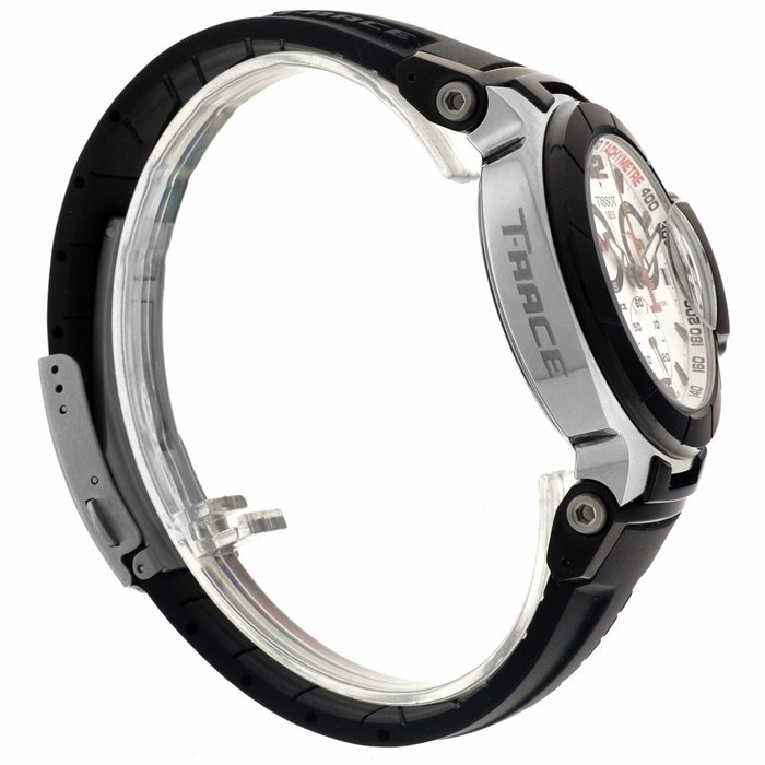 Sportief Tissot T-Race herenhorloge met datumaanduiding en chronograaf. Het uurwerk is voorzien van een nieuwe batterij (feburari 2023).