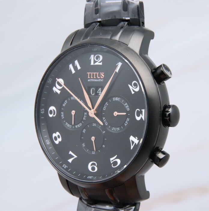 Model: Titus zwarte wijzerplaat eeuwigdurende kalender automatisch horloge