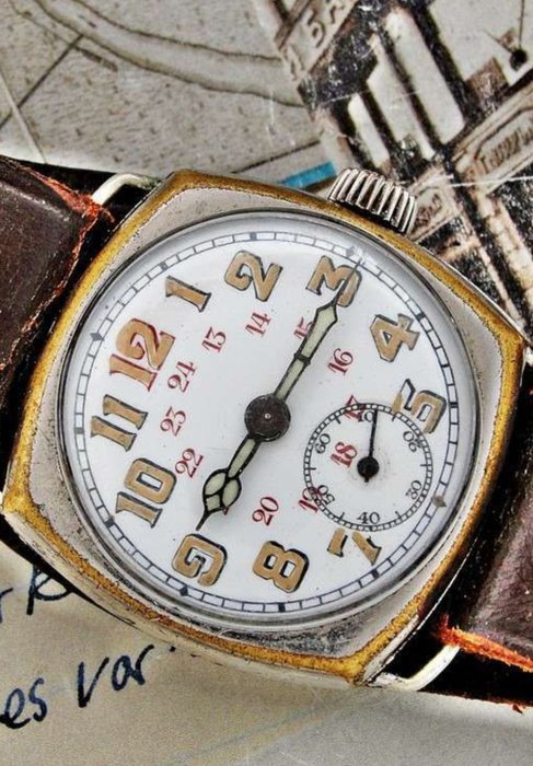 Trenchwatch uit de jaren 1910 met mooie oude leren band.