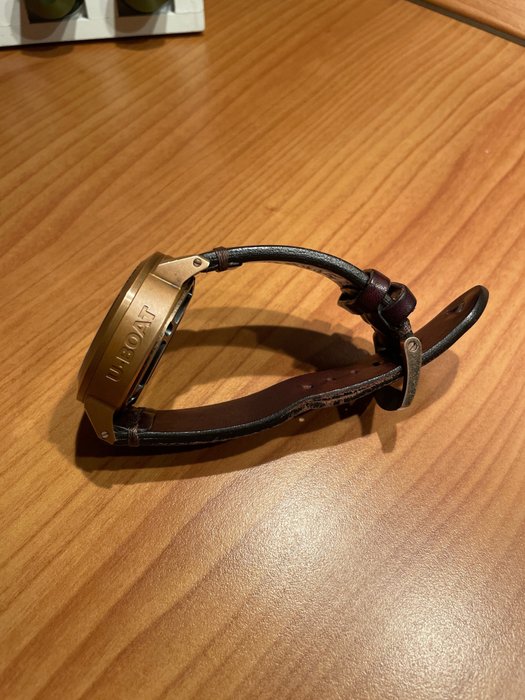 Kast in verouderd brons, onderscheidende kroon aan de linkerkant, met een gepatenteerde bescherming. Diameter 47 mm. Serienummer gegraveerd op een plaatje aan de zijkant van de kast.