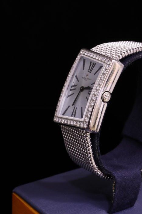 Vacheron Constantin Asymmetric MCMLXXII Diamond White Gold 1972. Het is in een zeer goede staat met enkele zeer lichte gebruikssporen. Het horloge loopt zeer goed en houdt nauwkeurig de tijd. Servicegeschiedenis van het horloge is niet bekend. Foto's maken deel uit van de omschrijving. Dit is alleen horloge, geen doos/papieren.