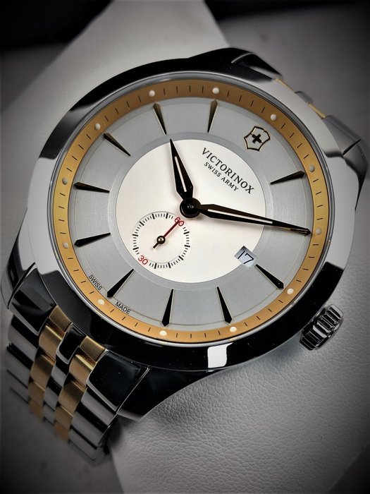 Victorinox Swiss Army alliantie, tweekleurig. Verguld roestvrij staal, witte wijzerplaat, Zwitsers quartz uurwerk. Model # 241764 - Nieuw! Nooit gedragen! Originele doos, 2 jaar garantiecertificaat (16-01-2025) en echtheidscertificaat.