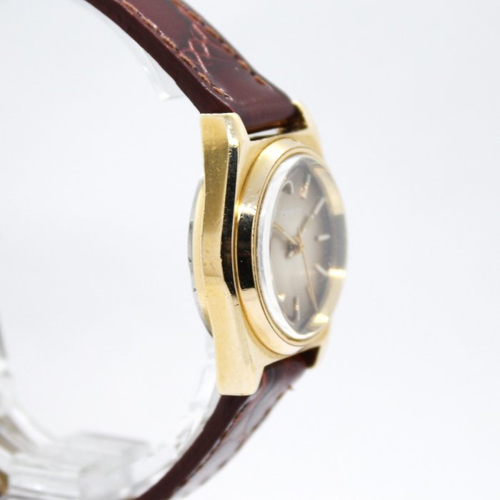 Kristal is in goede staat, geen grote krassen of barsten. Wijzerplaat ziet er geweldig uit. Kast heeft gebruiks- en ouderdomssporen. Leren band is ongedragen. Servicegeschiedenis is niet bekend maar het horloge werkt goed, het loopt ongeveer +- 20 seconden per dag.
