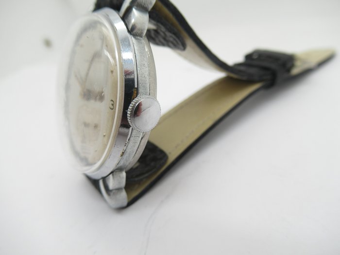 Dit horloge wordt aangedreven door een Zenith 106 handmatig opwindbaar uurwerk dat in de jaren 50 in Zwitserland werd gemaakt.
