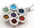 Alle chakra`s hebben elk hun eigen kleur en deze kleuren vind je terug in deze prachtige, verzilverde hanger.