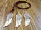 Deze stoere set bestaat uit een leren veterkoord van circa 90 cm. lengte (evt. zelf verder in te korten) met een hanger van circa 6 cm. lang en 2 cm. breed. De bijpassende oorbellen zijn ook circa 6 cm. lang en 2 cm. breed. De set is gemaakt van witmetaal, een nikkelvrije legering van verschillende metalen. Het gedraagt zich als zilver; het glimt en vertoont dezelfde vorm van oxidatie als zilver. Door witmetaal met een zilverdoek te wrijven, krijgt het een prachtige glans.
