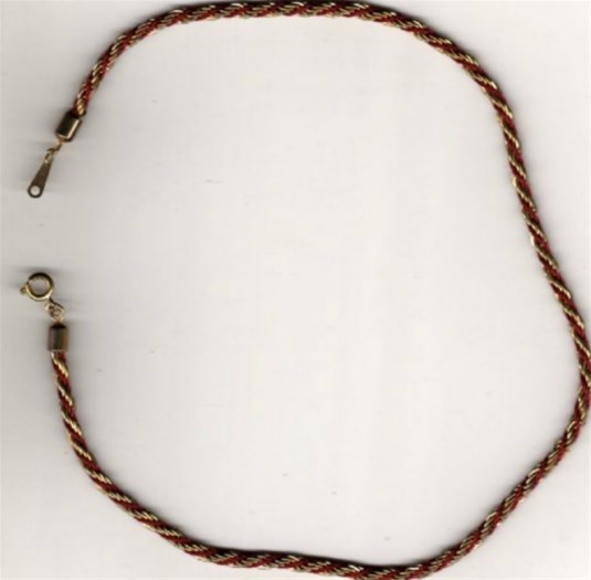 Nieuwe ketting van gevlochten metaaldraad en 2 kleuren textieldraad.