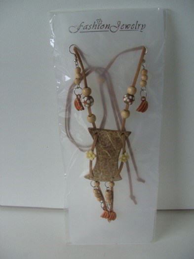 KETTING MET OORBELLEN HOUT & LEER (12) NIEUW