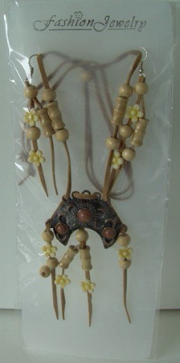 KETTING MET OORBELLEN HOUT & METAAL (2) NIEUW