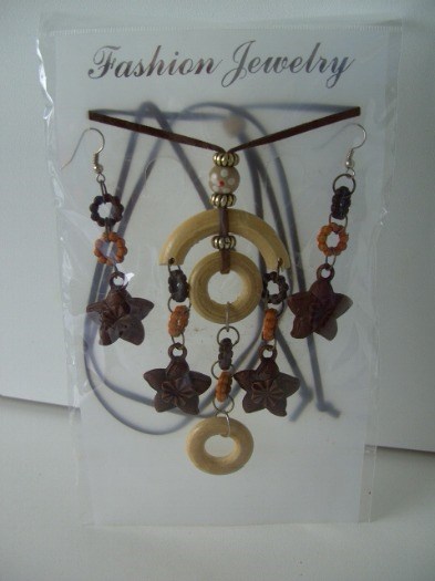 KETTING MET OORBELLEN HOUT STERBLOEM (6) NIEUW